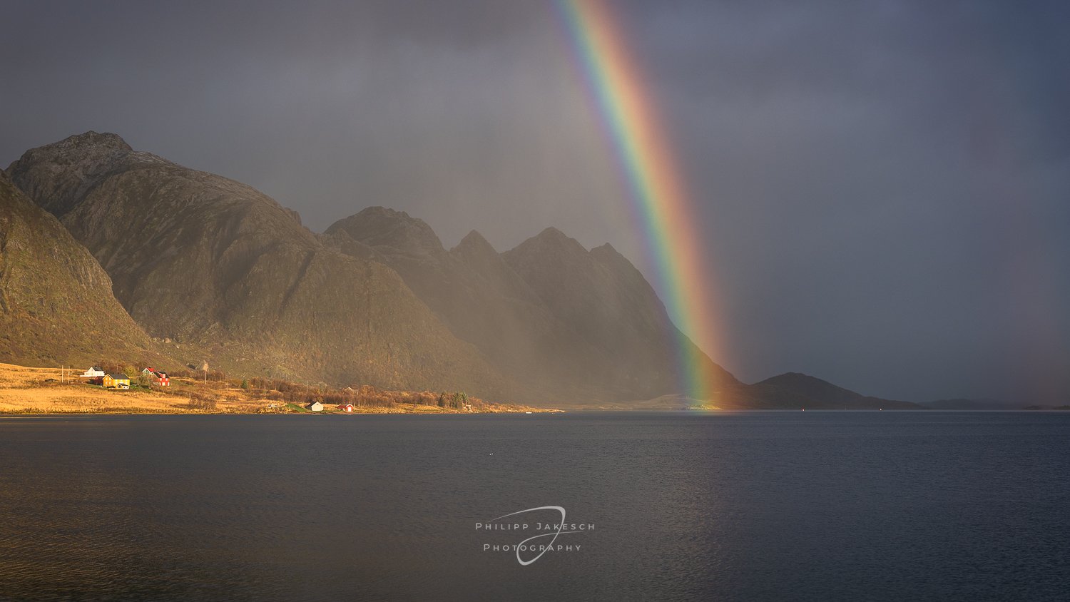 Da diese Szene dirket bei unserer Unterkunft stattgefunden hat, sind wir schnell rausgestürmt und haben das gute Licht ausgenutzt. Nur mit der Kamera in der Hand und dem Reinigungstuch in der Regenjacke, haben wir gemeinsam verschiedene schöne Blickwinkel erkundet. Und genau da ist auch schon der wichtigste Punkt. Der deutliche Regen ist auf dem Bild selbst gar nicht so gut zu sehen. Natürlich gibt es eine gekräuselte Wasseroberfläche, doch ist der Regenbogen der einzige wirkliche Indikator dafür, dass es erheblichen Niederschlag gab. Bei näherer Betrachtung ist ebenfalls ein “Regenvorhang” vor der Bergkette zu erkennen, allerdings muss man dafür schon etwas näher hinsehen.