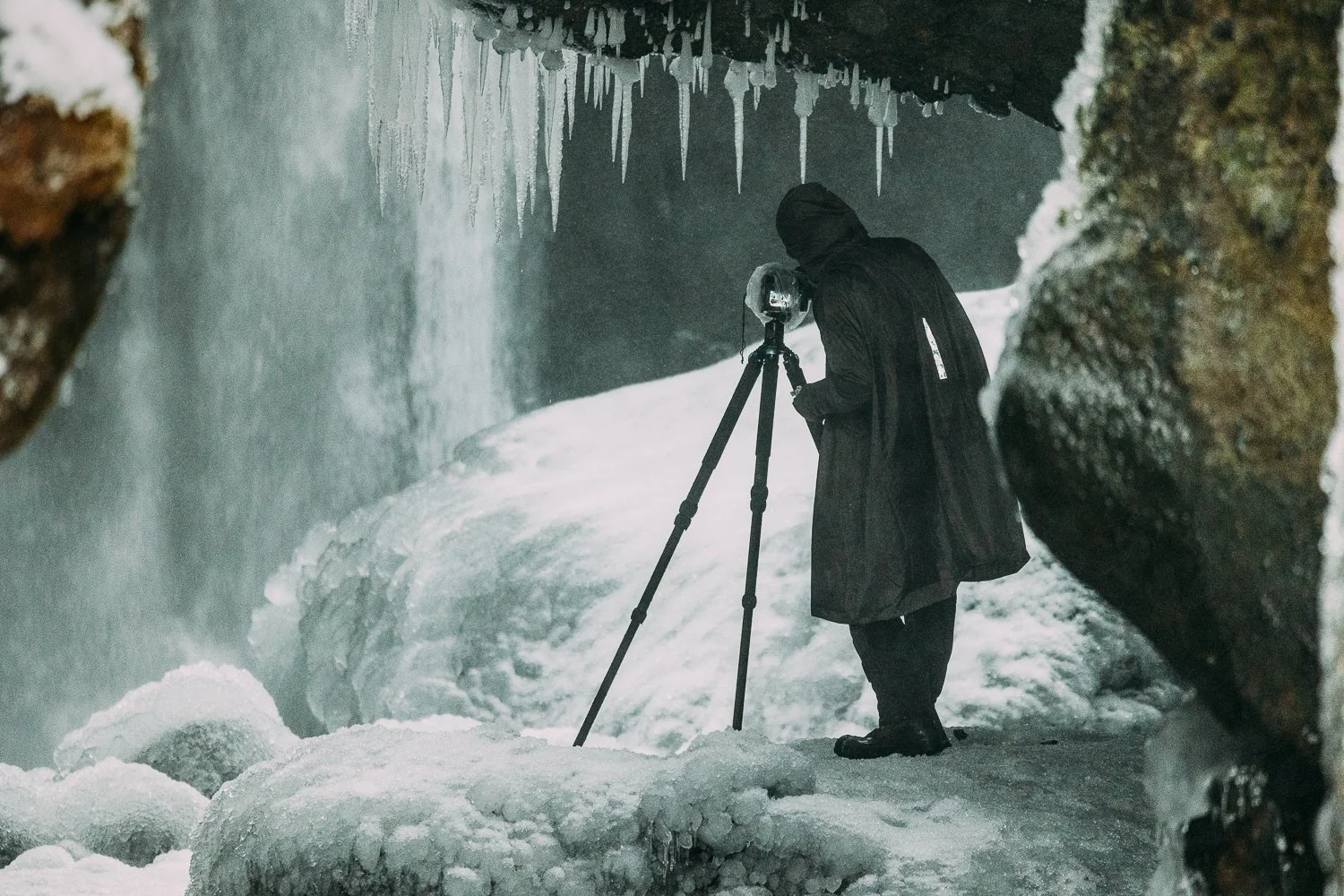 Eine der forderndsten Bedingungen fand ich wieder mal in Island vor, denn an diesem Tag hatte es nicht nur eisige Temperaturen, deutlich unter dem Gefrierpunkt, sondern haben wir auch eine Platz besucht, der immer unendlich Feucht und voller Sprühnebel ist. Wenn ich bei einem Besuch mit einer Hand voll brauchbaren Bildern davonkomme, bin ich überglücklich. Die Realität sieht meist so aus: 100-200 Bilder von einer Szene mit starkem Sprühnebel und ca. 10-15 Bilder, die brauchbar sind und keinen bzw. nur ganz kleine Tropfen aufweisen.