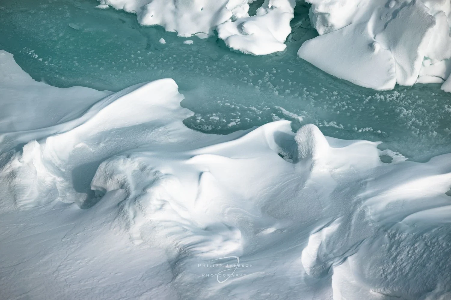 Der geplante Landausflug fällt wegen tiefem Schnee aus – dafür fahren wir mit dem Zodiac durch eine spektakuläre Eislandschaft. Die Formen, Farben und Strukturen der Eisberge sind atemberaubend. Während wir noch fotografieren, entdecken wir in der Ferne einen weiteren Eisbären – schwimmend, dann entlang der Küste wandernd.