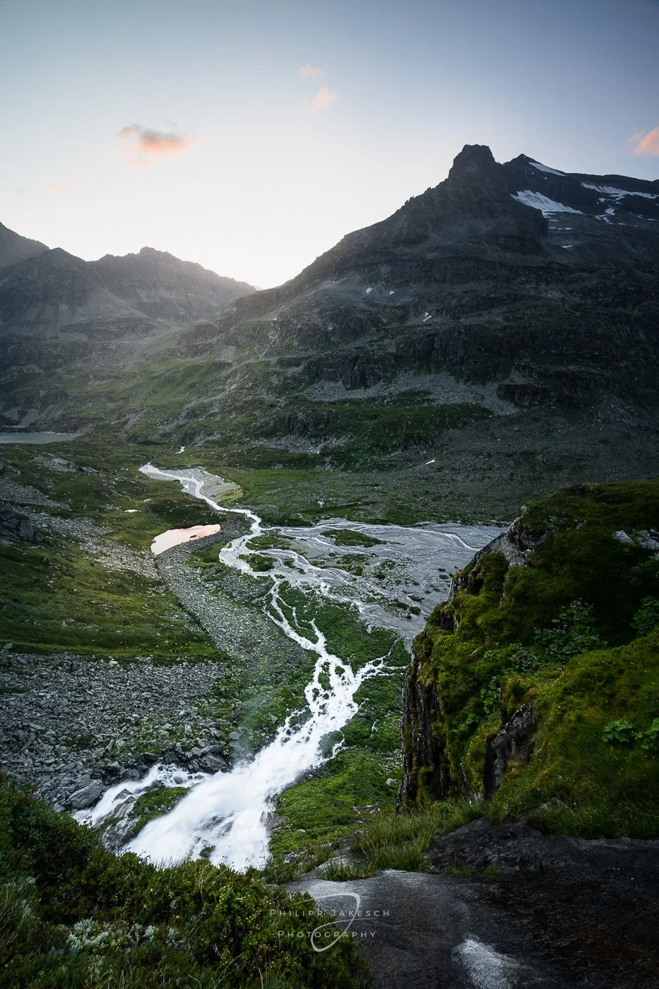 Eine ganz besondere Region in Österreich ist der Nationalpark Hohe Tauern. Zwar liegt die Rudolfshütte selbst außerhalb des Nationalpark, allerdings können wir durch kleine Wanderungen bereits in den Nationalpark selbst eintreten. Ein Weg führt uns über einen sehr guten Wanderweg bergauf. Egal, wie weit wir diesem Weg folgen wollen, wir finden auf jedem Meter neue und spannende Dinge, die wir fotografieren können. Die widerstandsfähigen Alpenblumen kontrastieren hervorragend mit der schroffen Bergregion. Die vielfältige Naturlandschaft bietet sowohl für das Ultraweitwinkel, als auch für das Teleobjektiv ausreichend fotografische Möglichkeiten.